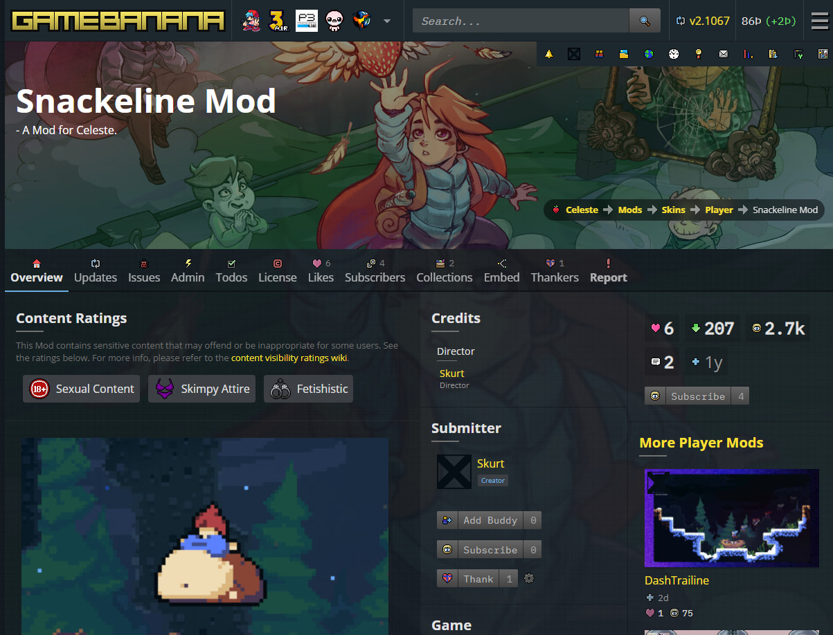 About half a year ago I have found a skin mod for Celeste on Gamebanana that turns Madeline into a supersized chonker.