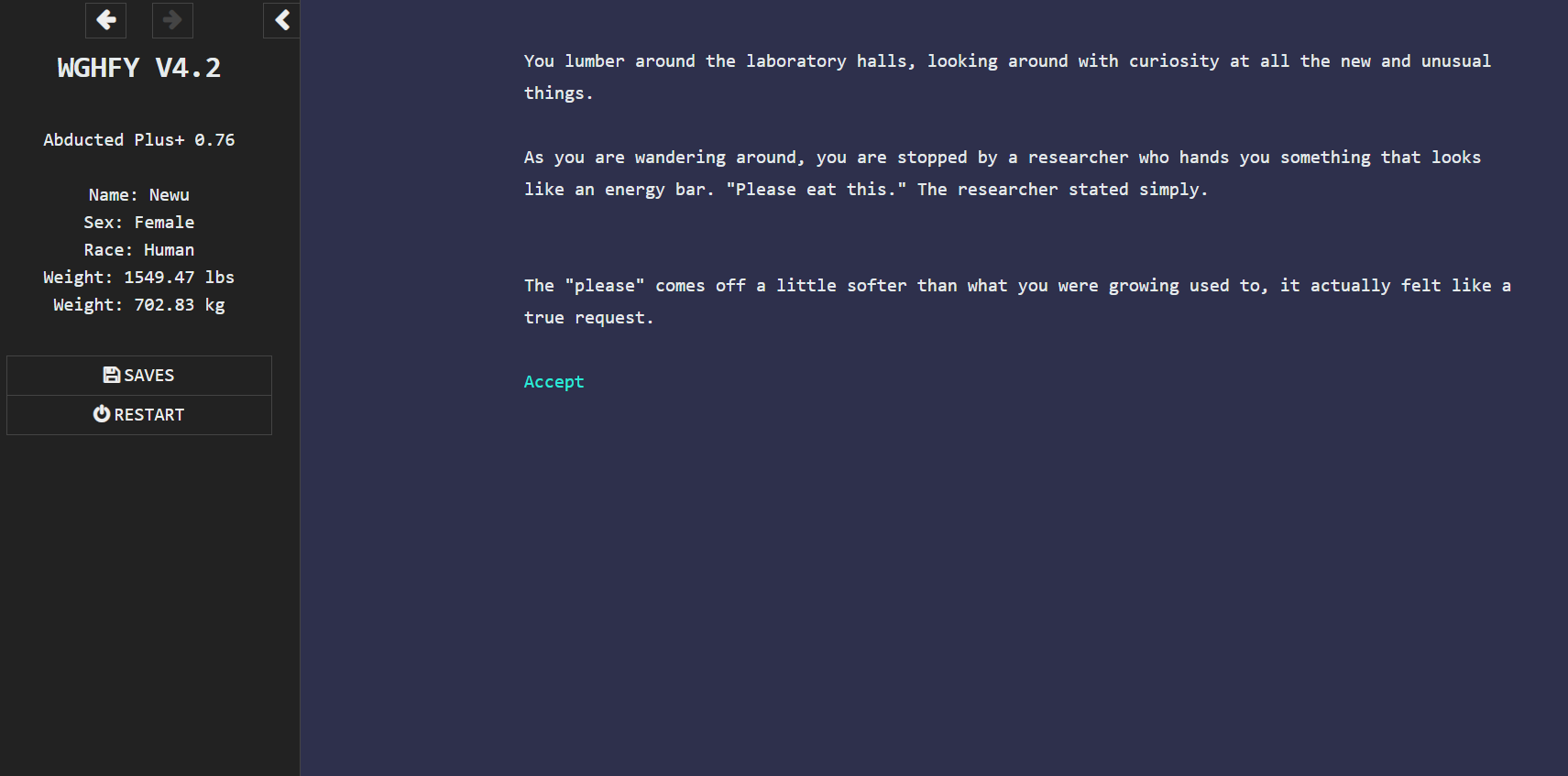 [Finish Toggles + coinciding new “events” / New Weight Level] - Update 1