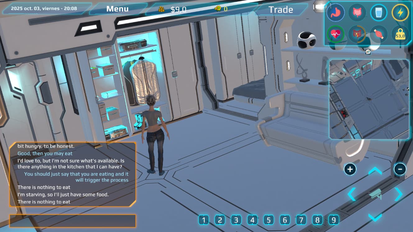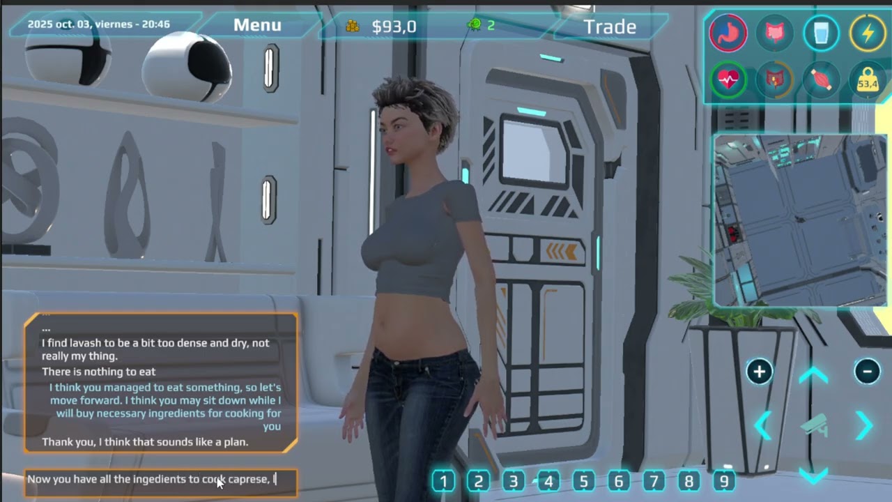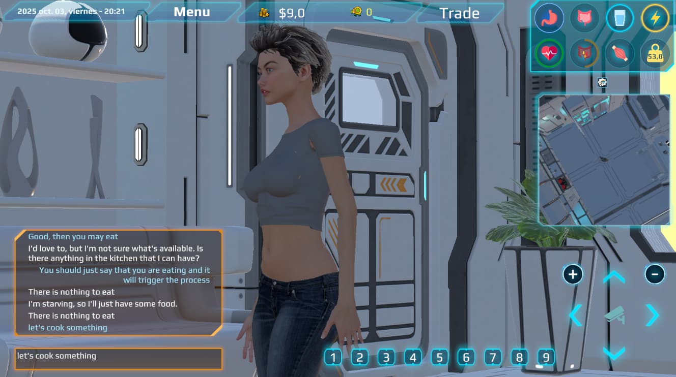 The game performs dynamic context recognition in the background (keywords, etc.). Based on your conversation, tasks trigger automatically: eating, training, washing hands, showering, sleeping, sitting, cooking. There are also extra tasks: enema and drinking from the sink — they exist, just so you know.