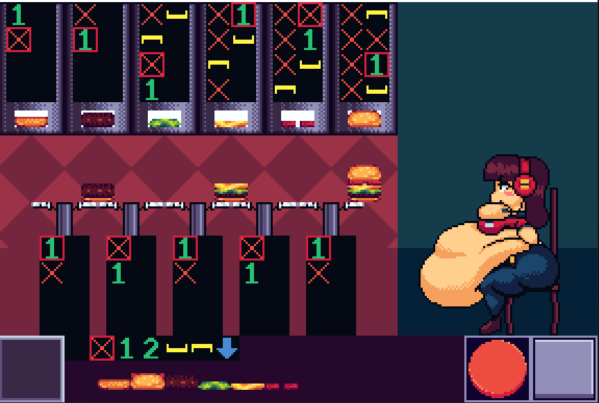 Then, once swappers are done, explain applicators. Have the player create a basic burger, so they understand how swappers and applicators interact in gameplay. After this, you’d only really need to explain the conditional button. And while creating a stage for its tutorialization would be cool, I don’t think it’d be entirely necessary.