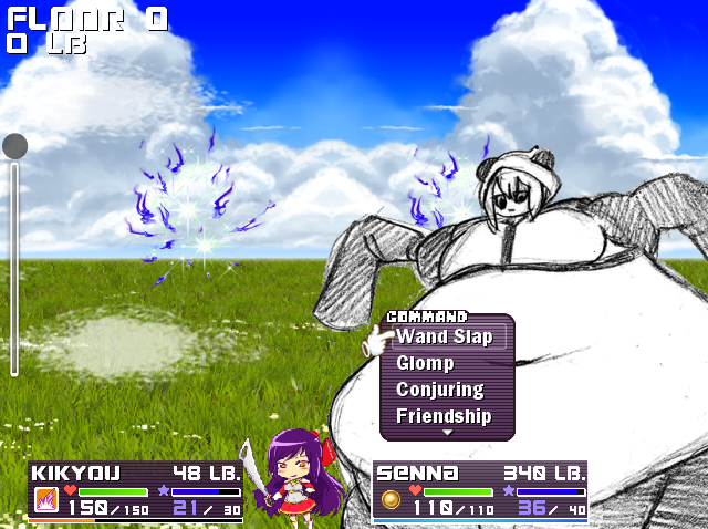Also, the new UI breaks my brain less. Yay! It’s a problem I have with RPG Makers VX and up; the sprites are too noisy and I go cross-eyed. Nice solid colors help combat that.