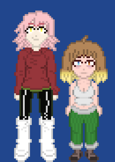 So the new area’s gonna introduce a fishing minigame, and I thought it’d be fun to have a catgirl to feed fish to and you can also get money from doing so. I was trying to figure out which catgirl I wanted to do, then I remembered Haruko from FLCL is catlike. I’m working on the pixel art for her currently, and might fix up the model a little.