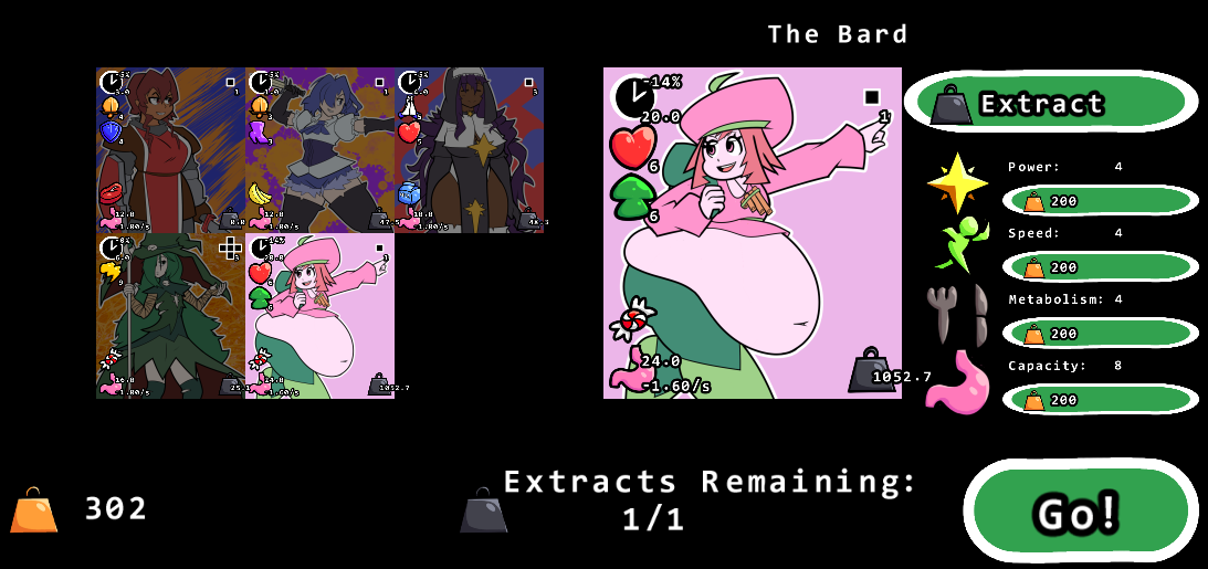 we can make a āall you must eat buffetā to force character must lower speed each room, till level over, give great reward like āevery one can Extract onceā, you wonāt let every one get in another level with fatness over 1000, right?
