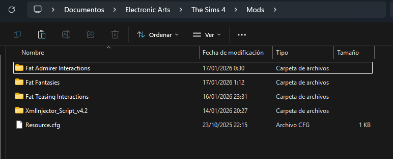 The “Fat Fantasies” mod is the base mod, while “Fat Teasing Interactions” and “Fat Admirer Interactions.” are additional optional mods. As mentioned above, only install Fat Teasing Interactions if you are ok with those.