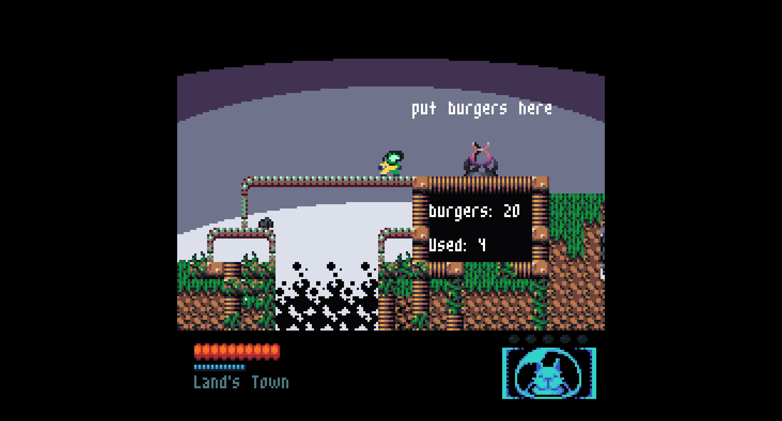 i’m on hashtag don’t-work-on-updates weekend so i’ll see what I can do on tuesday, thanks for letting me know abt the dialogue stuff and reminding me that the options menu still does nothing (i meant to change it later…) the burgers restoring health… that could be the thing that makes it important to get multiple burgers in a run… hmmmmmmm