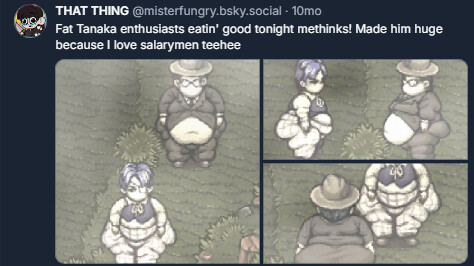 It is interesting to see a funger fan fat fetish game(quad-f right there lol), though I do think I would love to see male characters but hey not all into fat males or females, & probably like the game over/death is going to be graphic because of funger, well if I have one in mind if you want all female characters, I’ll say Sylvian & GOFH are the main gods in this story of the game & I think spritework would be great if it was similar to Miro’s spritework so it can, in my opinion, make the fat characters in style of Miro’s.