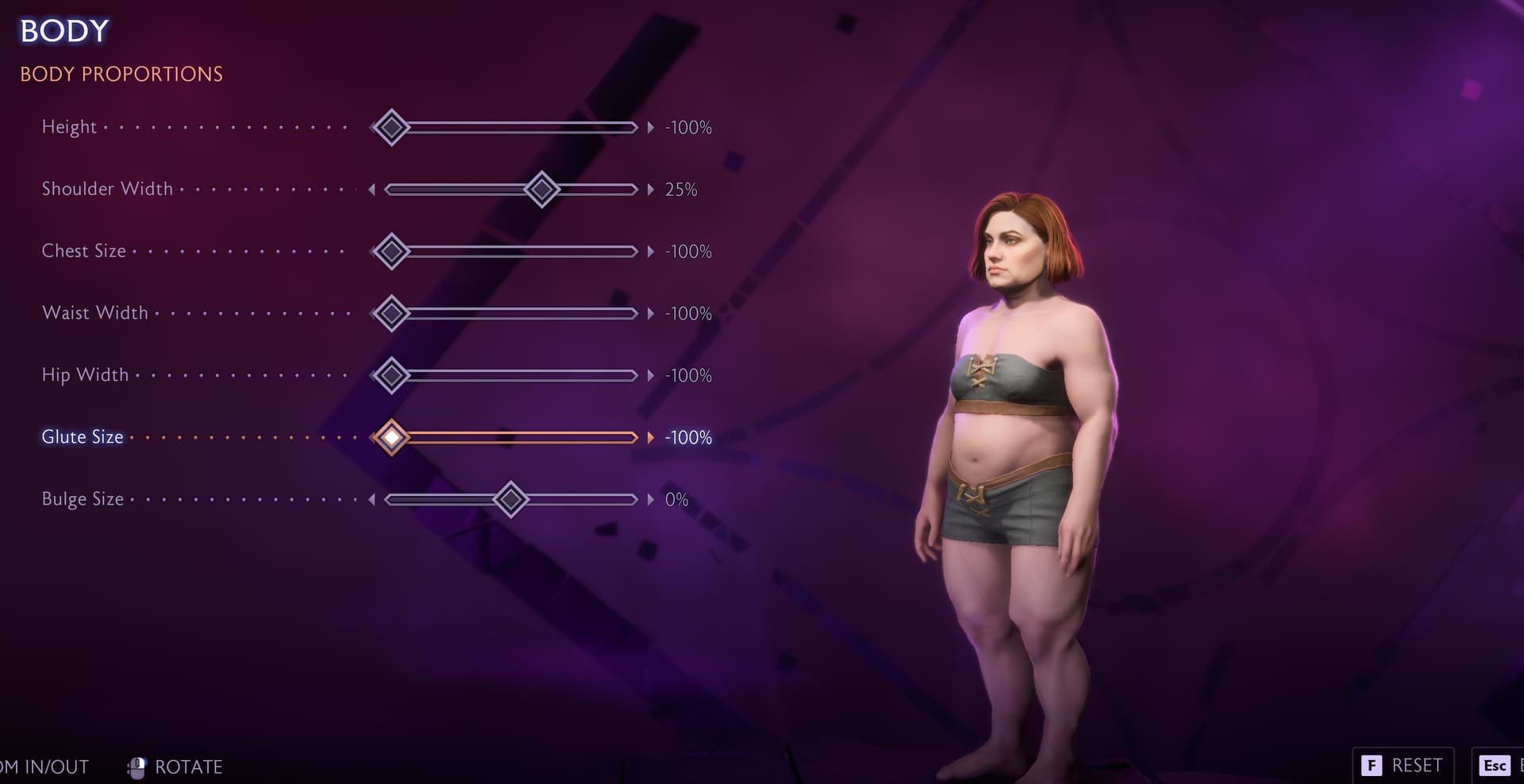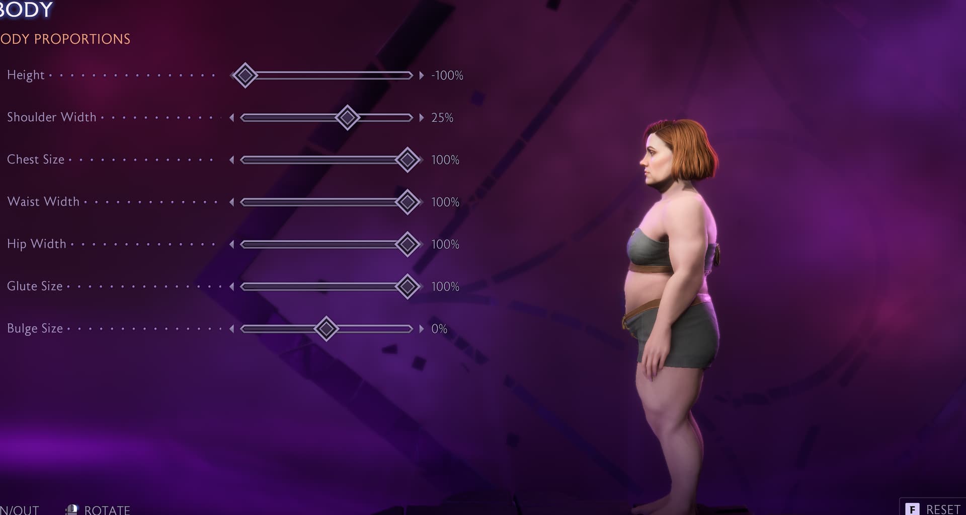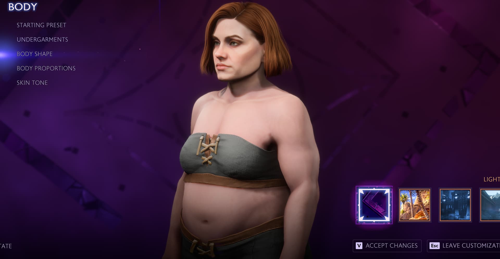 There’s the triangle that lets you choose between blending muscle, thin, and fat (body shape options) and then some body proportion sliders. Overall It’s very minor in my opinion.