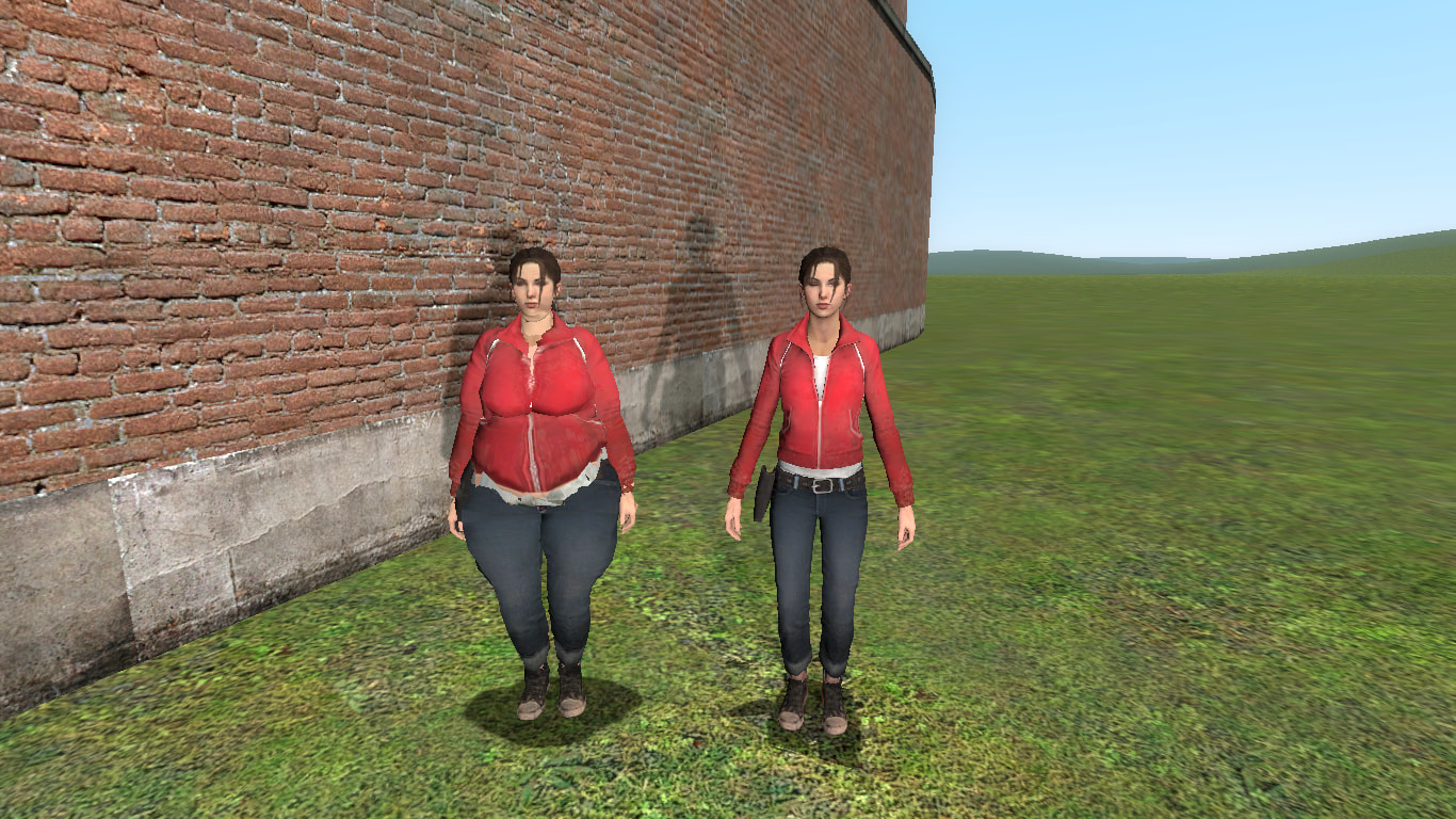 So I made overweight version of Zoey, I tried to push the limits to see how far can the model handle. She looks decent from distance, I also edited the textures. Download the folders and paste them in the addons folder in Gmod. to access big Zoey as ragdoll just type “bb” in search in the spawn list and you will see her, the transform mod you can find it in the “entites” spawn list and it will spawn a jug, you press “E” when aiming at it and you will transform to big Zoey, its recommended to set your player model as normal Zoey and then use the transform mod to simulate weight gain. Also please download Zoey mod from steam workshop.