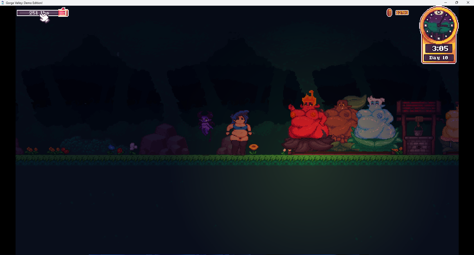 This game can expand in any number of directions. The town, the characters, new crops, new livestock options, crafting, mining, and exploration. Considering you’re in a valley populated by monsters, I’m especially curious to see how Dandy would implement a combat system and how they would make it kinky. I don’t really like comparing art forms, obviously Dandy got inspiration from Stardew Valley, but this game also kinda reminds me of Kingdom: Classic, and I think both games are an example of where to expand mechanics into. Long story short, I love this game and I’m excited to see where it goes!