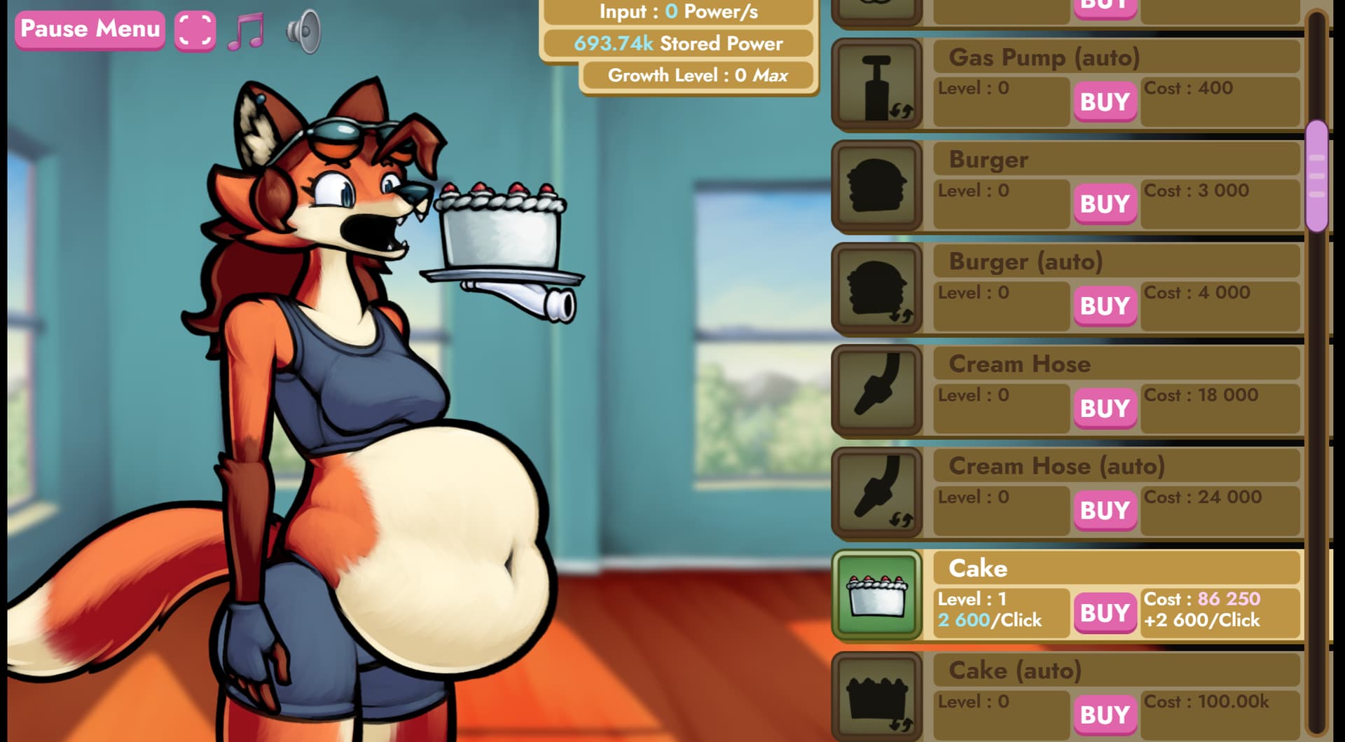 Overall a pretty cool game, though it’s still a bit too early in development so it’s still basically 95% just a super basic clicker with super basic clicker gameplay mechanics while a fox grows on the side. Kinda hoping the game separates inflation vs stuffing into two categories of art once the WG mechanics get in since a huge pet peeve of mine is when a character gets obese from being inflated. Right now I don’t think the game’s code differentiates between the two, so I imagine “fat inflation” will be a thing.
