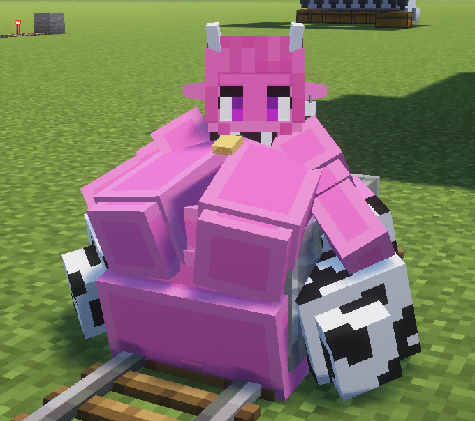 but i really like how it turned out. my fist time using the custom player model creator mod i accidently made the first skin backwards but for this rotund blue bunny i made her unbackward