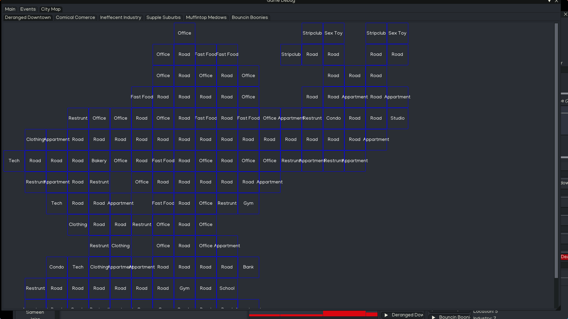 From there you can identify the blocks the walkers created and fill them with buildings according to what you want. Personally since most cities tend to grow outward I would have larger buildings and commercial centers be more likely near the starting position of the walkers and along really long sections of roads with residential becoming more likely the further you get from the city center.
