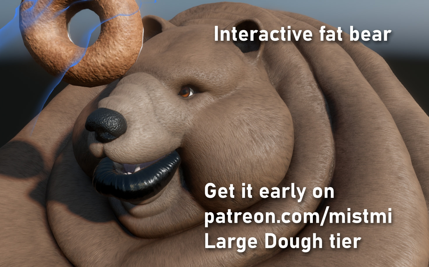 I’m working on experimental fat bear app where you can play around with jiggle physics on bear’s blob face and customize them.