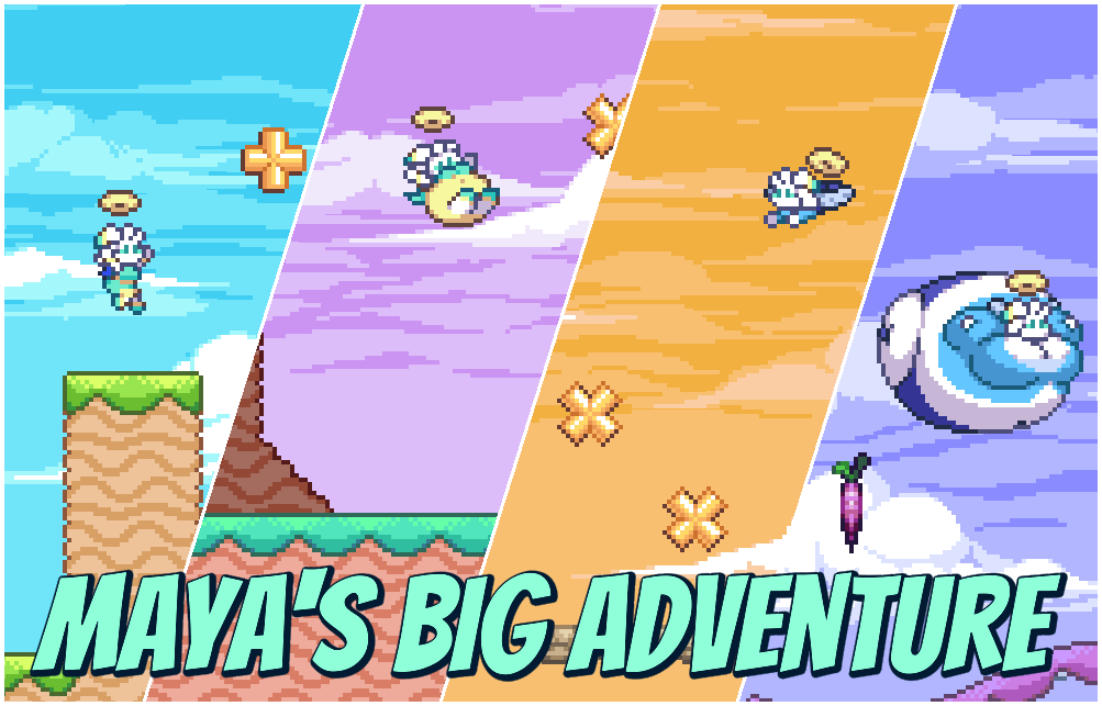 In it, you play as my OC Maya. The main hook of the game (at least when I started making it anyway) is the contrast between controlling a small and agile character vs. a larger more unconventional one. Maya herself is very athletic, able to run around, wall jump and generally just be pretty good at platforming.