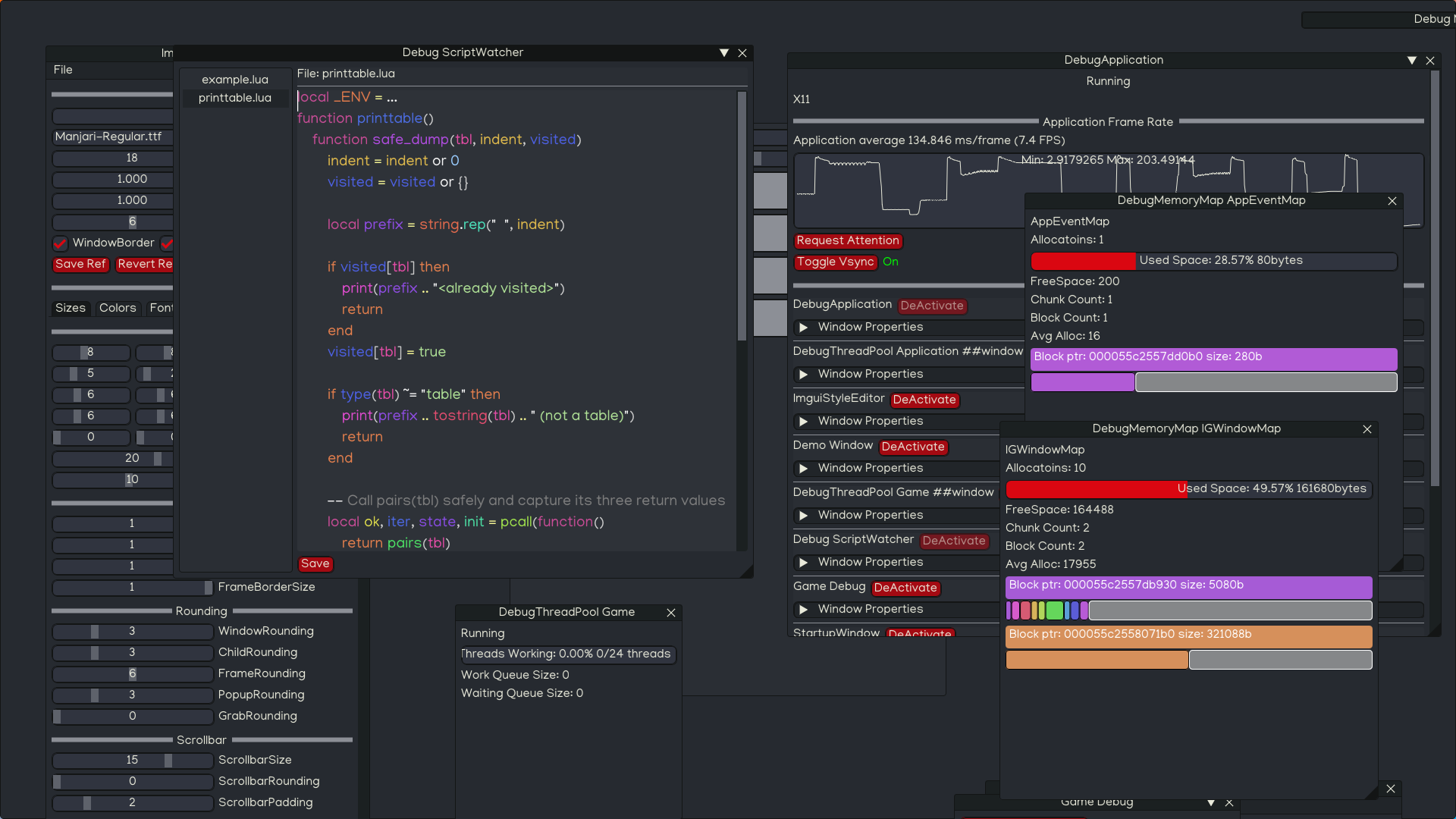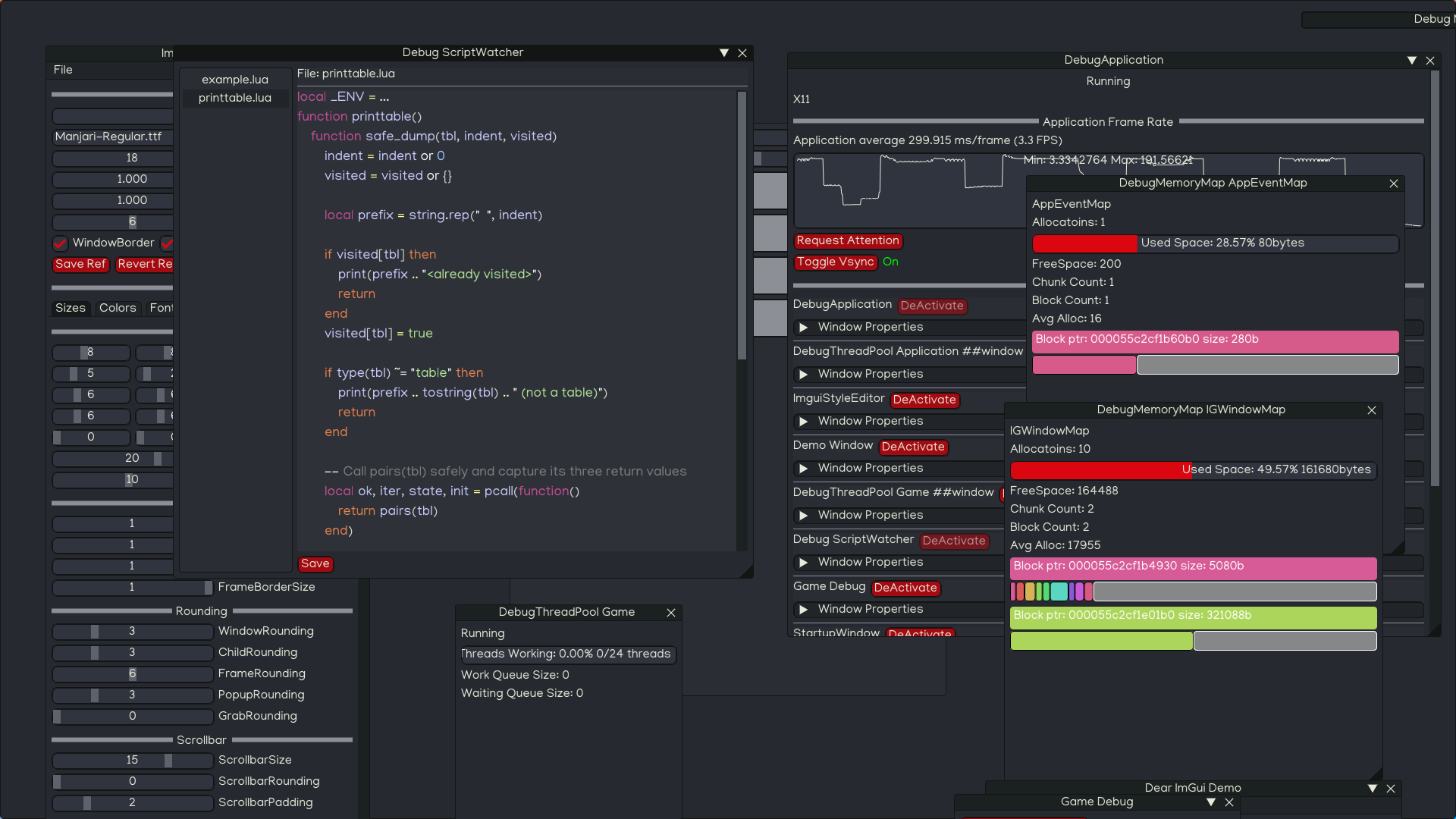 For reference the point of this mini editor, was that i wanted to have special syntax highlighting for my bindings in lua, so someone looking at or editing can at a glance see that the identifier typed in was part of my bindings.