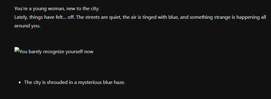 I’m not usually one to negatively critique a game’s art or style, even if it’s AI, but I’m struggling with how different the images and characters are from scene to scene. The MC in one weight stage looks wildly different from another, and the same goes for the rest of the world around.