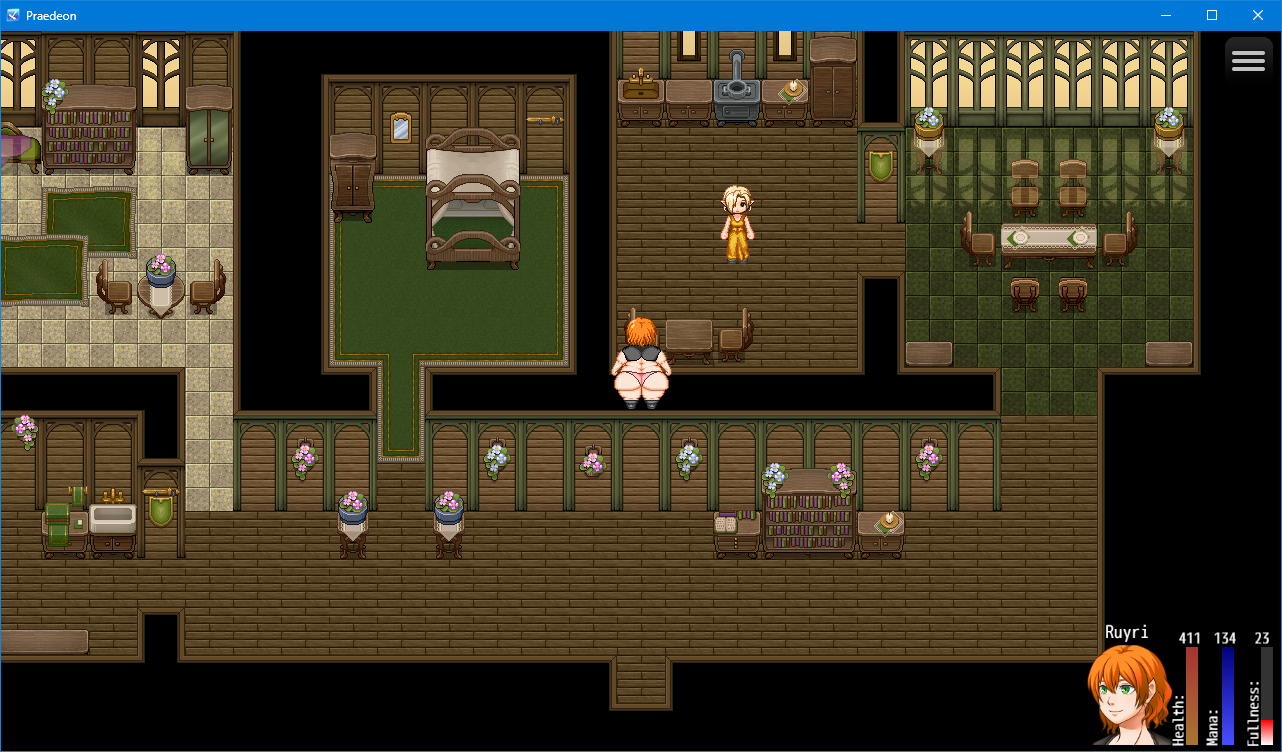 Also I’ll have to agree with you on what you said some comment further up this thread. I really like that this game isn’t too weight-gain oriented, atleast not fat wise. Also the excersise thing is really interesting. Even though it’s a bit counterintuitive to lose weight in a fat fetish game. I like that as a player you can’t rush through the entire “content” (sprite stages). Also, I find the damage from being above max fullness and the amount of honey(?) from the vines to be optimal. The slow weight gain and the excersise option for weight really motivate to play long term. I defend the opinion to keep it this way.