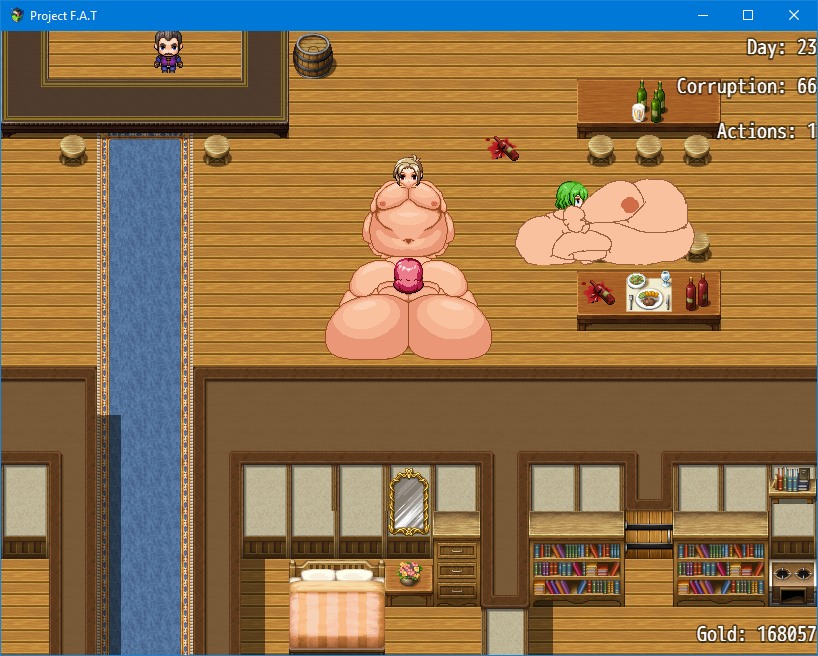 so i restarted since my old 1.5.5 save didnt work on the 1.6.3 version (all characters in the party lost their sprites), did some stuff i know i need to do, day 5 managed to get to weight 900, but i also spawned in Phatrelle, managed to defeat her first encounter, followed her to succubus village cuz why do it later only go get 1 shot by any of her attacks, i cant leave because i havent defeated her and i also forgot to save/overwrote the save before entering the succubus village- great