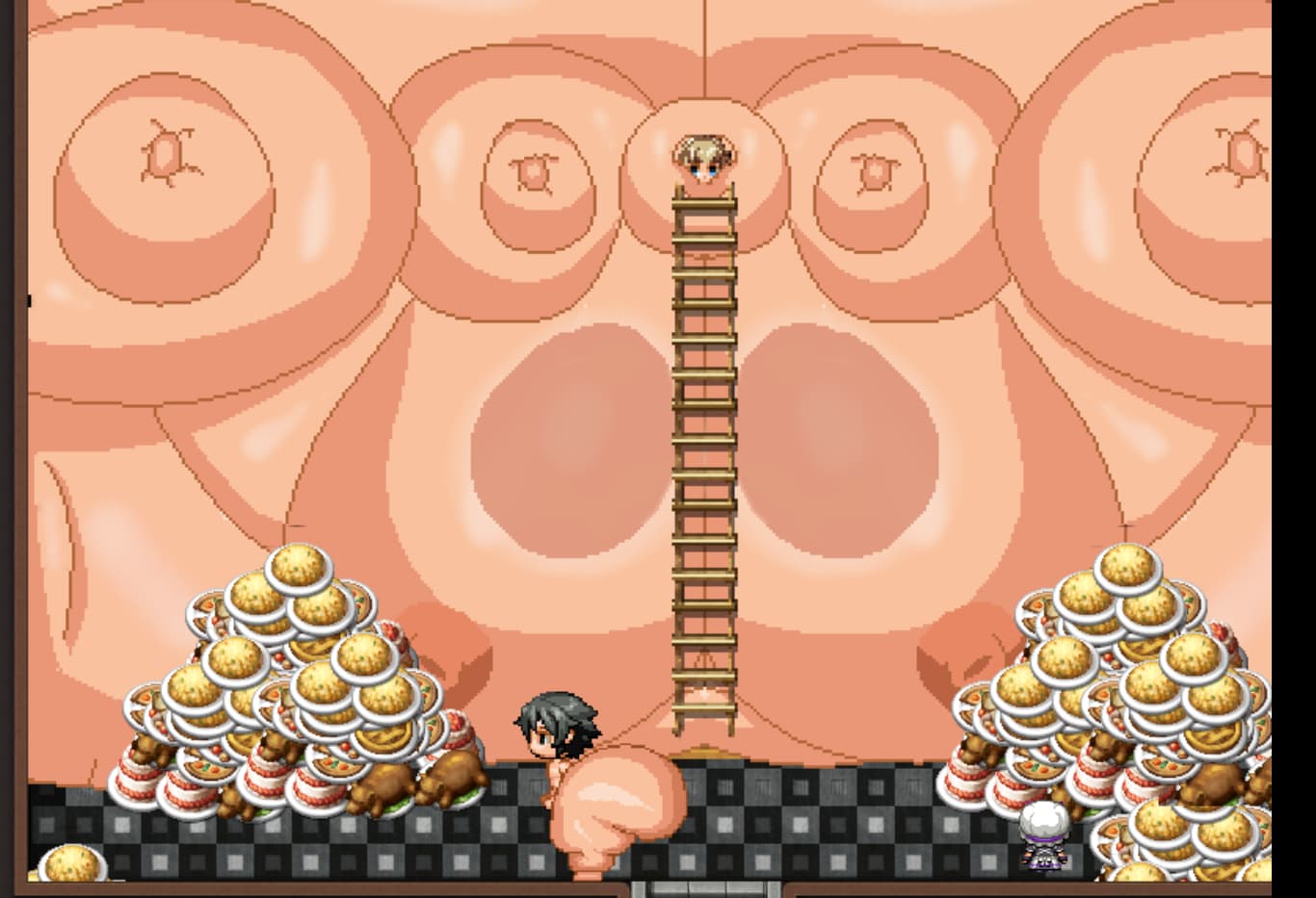 Multiple Animated Sprites with hyper size proportions, mutliple characters capable of being fattened to the point of Room to Mountain Sizes