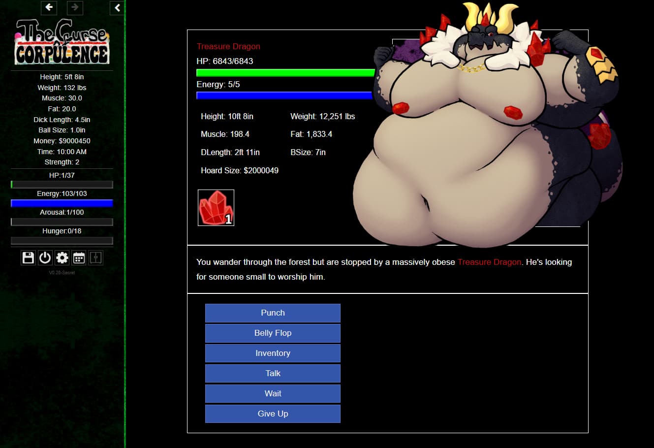 Live the life of someone afflicted with a curse that either makes you super fat or ultra buff. You can go out into the woods and fight monsters, or talk to them and try to make friends - or fuck them.